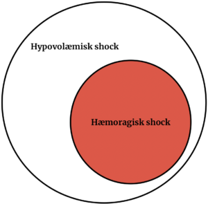 Indlægget her handler om hæmoragisk shock. Et hæmoragisk shock er en underkategori af de hypovolæmiske shock som illustreret af nedenstående Venn diagram: