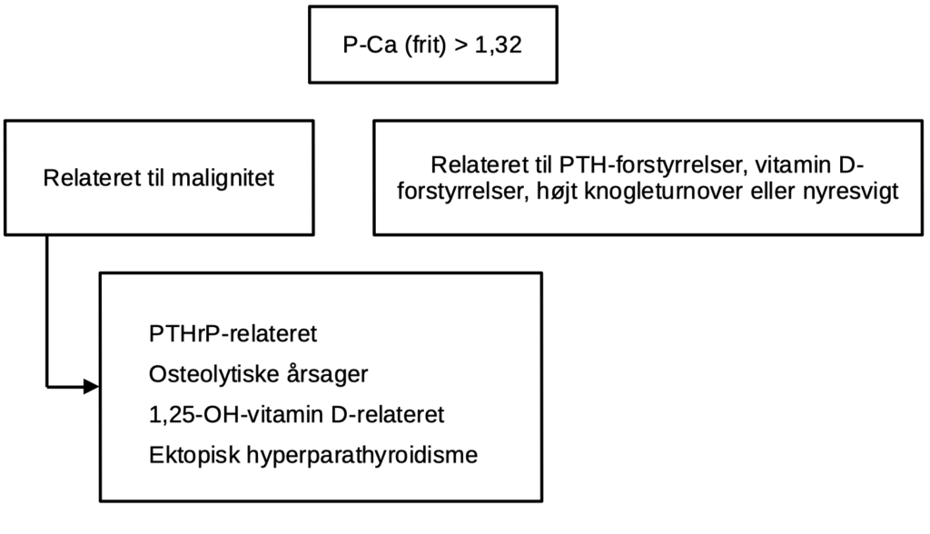 I en dansk hospitalspopulation er hypercalcæmi ifølge Nygaard & Kristensen (2021) for 60 %’s vedkommende forårsaget af malignitet, så står du med en patient på medicinsk sengeafsnit, og har patienten ikke en kendt cancer, må man sige, at patienten er højsuspekt for cancer indtil modsatte er bevist.