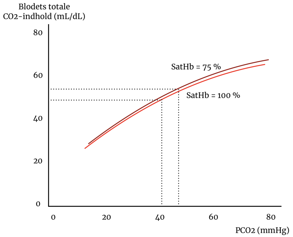 Effekten er til at tage at føle på: Deoxygeneret hæm har en godt 3 gange højere affinitet for CO2 end oxygeneret hæm har.